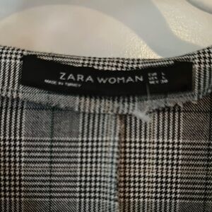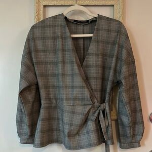 ZARA | Black and White Checkered Wrap Blouse Top Blazer with Puff Sleeves