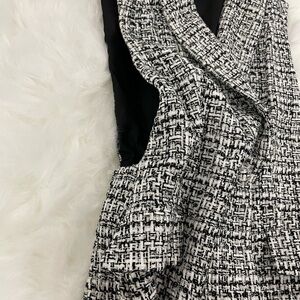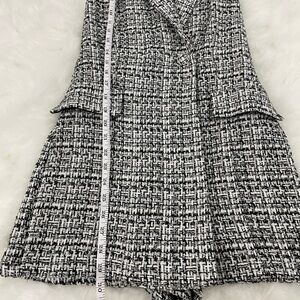 This cute romper buttons with a front panel that makes the piece look like a mini dress from the front. Inside there is also a zipper fly. The sides under the arm are low so you could wear long sleeve top and boots with this in colder weather or a cute lacy bralette under it in the warmer weather.