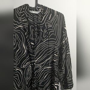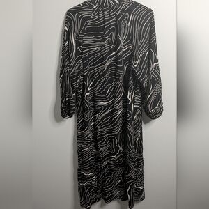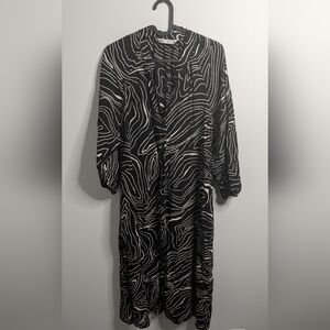 Abstract black and white Zara midi dress. 3/4 length balloon sleeve, notched collar, button front midi dress. Can be worn as a dress or open as a duster - with boots or sneakers
