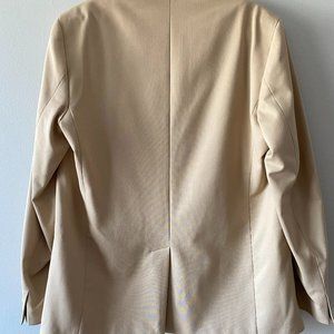 Pointed lapel collar and long sleeves with buttoned cuffs.