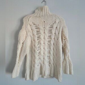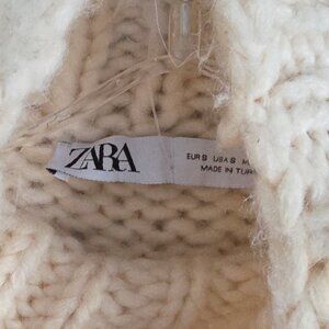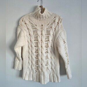 ZARA | Blogger Favorite Thick Cable Openwork Knit Turtleneck Sweater cream Sz S