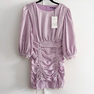 ZARA Blogger Lilac Gingham Ruched Mini Dress