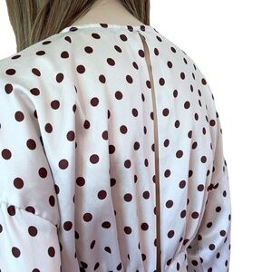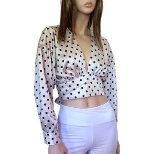 ZARA Blouse Top Shirt Long Sleeve Back Bow Tie Long Sleeve Plunge Neck Polkadot