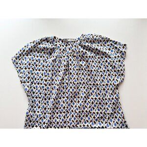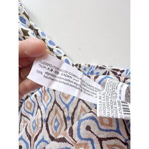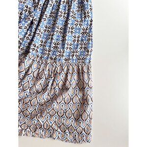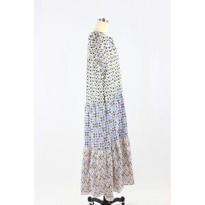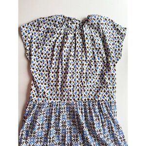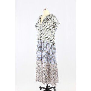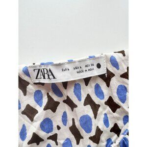 ZARA Blue Printed Cotton Voile Tiered A-Line Midi Dress, Size L