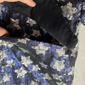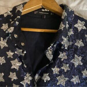 ZARA Blue Silver Star Sequin Shirt Jacket Sz M Bowie Ziggy Festival Oversized
