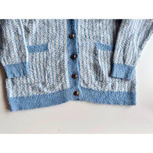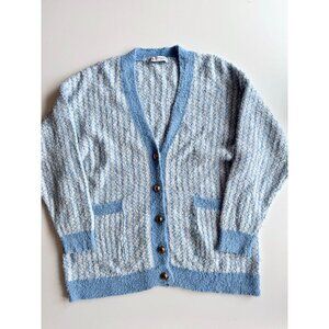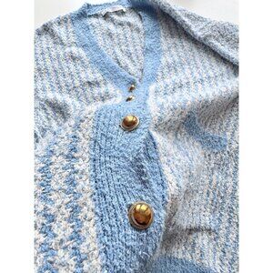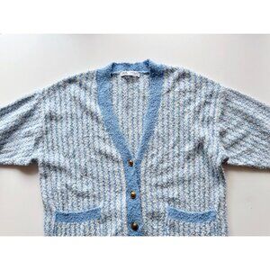 ZARA Blue White Cotton Blend Fuzzy Knit Oversized Cardigan Sweater, Size XS-S