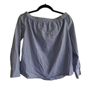 ZARA Blue White Striped Cotton Blend Off Shoulder Long Sleeve Blouse Top Shirt S