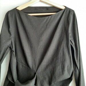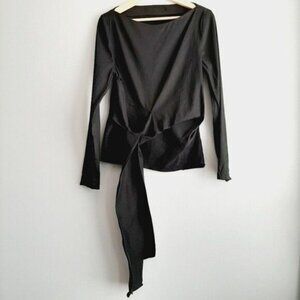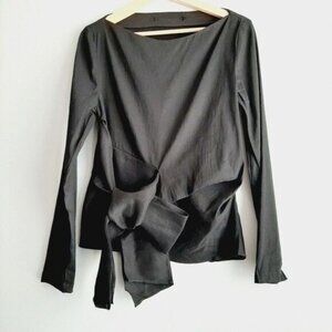 ZARA Boat Neck Tie Waist Modern Neutral Blouse Sz M
