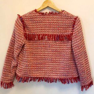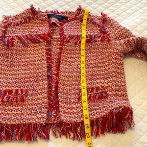 ZARA Boho blazer jacket frayed fringe tweed influencer fave red white sz medium