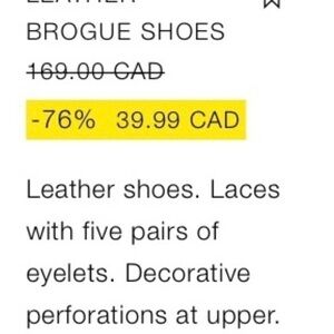 ZARA Brogue Wingtip Leather shoes, made in Spain GUC