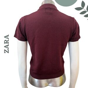 ZARA Burgundy Wool Mock Neck Knit Top Short Sleeve – Size M