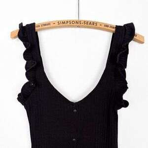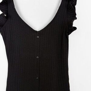 ZARA Button Front Ribbed Bodycon Midi Dress Frill Sleeve Black Size Small
