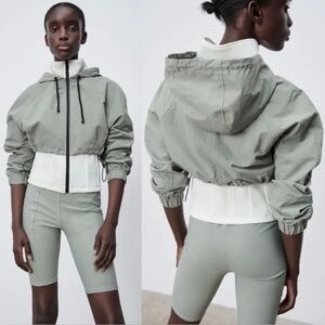 ZARA CONTRAST NEOPRENE-EFFECT HOODED JACKET Size XS