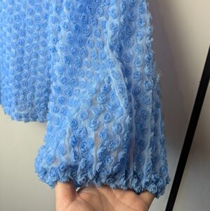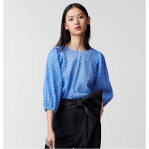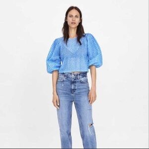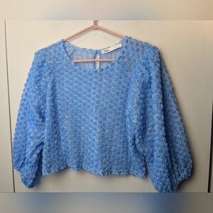 In good used condition Blue Zara CROP puffy sleeves tulle texture size small