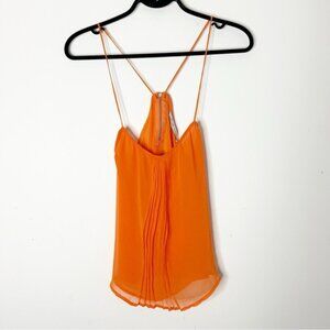ZARA Cami Blouse Tank Top Chiffon Flowy V-neck Criss cross Bright Orange 00s S