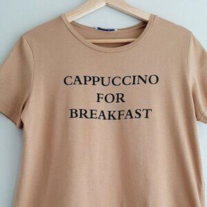 ZARA | Cappuccino for Breakfast Lace Hem Crewneck T-Shirt Cream Tan Tee Sz M