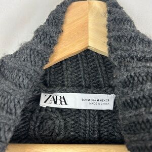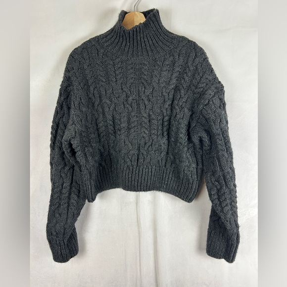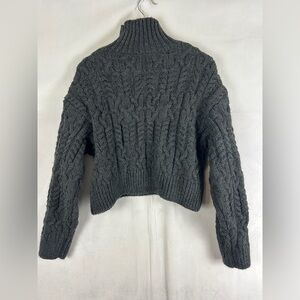 ZARA Chunky Cable Knit Cropped Turtleneck Charcoal Grey Size Medium Wool Blend