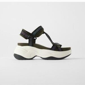 ZARA | Chunky sandals sporty reflective straps green purple platform sz 40