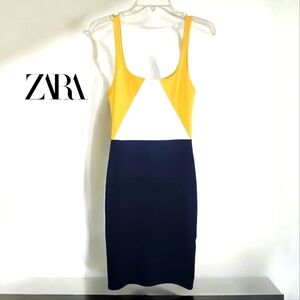 Women's bodycon Shift colorblock dress featuring yellow, white, and an attached black pencil skirt with back slit. Perfect for a night on the town.