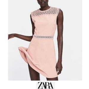 Round neck short sleeve dress. A-line silhouette. Back hidden zip closure.