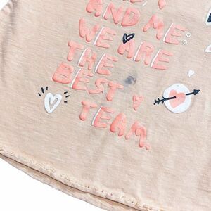 Super cute little tee with wide cut and frilly trim. Bright neon coral sparkly print. This is in play condition, there's a stain on the front I just can't move, but we all need some spaghetti night/paint day clothes right? Get this in your bundle with some shorts, kicks and jeans for a fun closet discount!