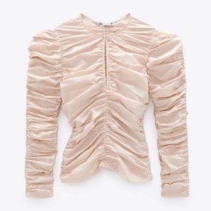ZARA Cotton Poplin Ruched Blouse