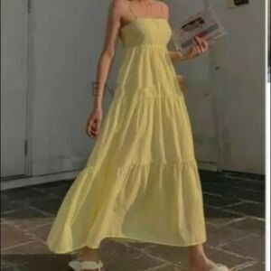ZARA Cotton Sleeveless Tiered Midi Dress Yellow M