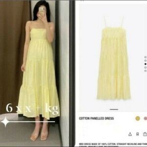 ZARA Yellow Cotton Sleeveless Tiered Midi Dress