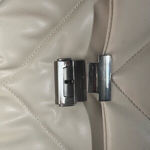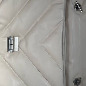 Chic cream quilted clutch from ZARA. Features silver clasp and chain strap. Perfect for stylish outings! Practically brand new—condition is almost perfect, only worn once. No signs of damage or wear