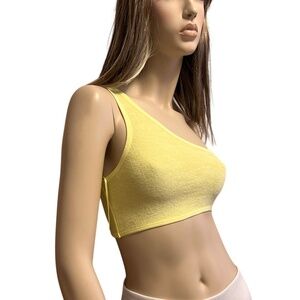 ZARA Crop Top Tank Shirt Cotton Blend Micro Terry One Shoulder Leisure Bra