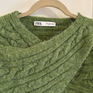 ZARA Cropped Cable Knit Sweater/Shrug– Olive Green (Size XS / EU S)