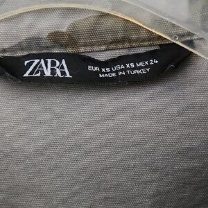 Selling ZARA | Cropped Camo Jean Jacket Oversized Military Green Sz XS. A minor stain on the sleeve as shown.