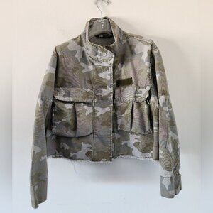 ZARA | Cropped Camo Jean Jacket Oversized Military Green Sz XS