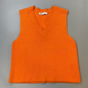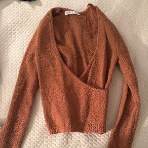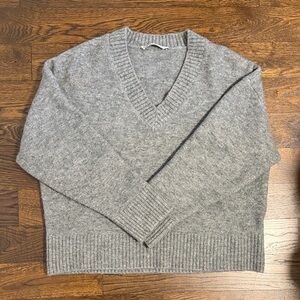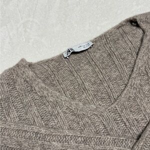 ZARA Cropped Chunky Ribbed Knit V-Neck Sweater Purple Large Alpaca Wool Lavender