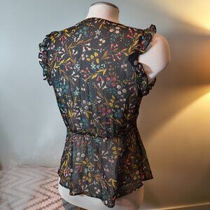 ZARA DARKPRINTED FLORAL TOP BLOUSE WITH METALLIC THREAD SEMI-SHEER