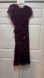 Long round neck dress with short sleeves. Pleat detail. Contrasting velvet appliqué. Interior lining. Hidden in-seam side zip closure and shoulder button closure.