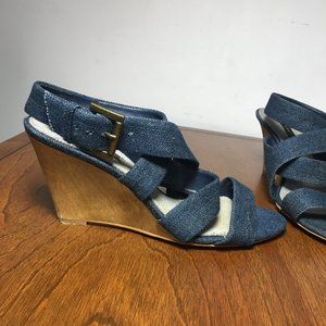 ZARA Denim High Heel Sandals Wood Heel