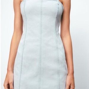 ZARA Denim Mini Dress Light Blue Spaghetti Straps Side Zipper Size M