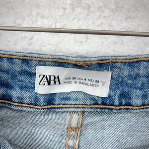 ZARA Distressed Ripped Hot Pant Denim Jean Blue Light Wash Short Size 4