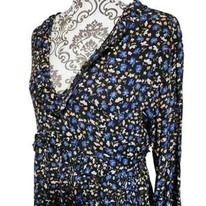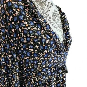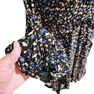 ZARA Dress Floral Mini Long Sleeves Black Blue Yellow Chiffon Y2K Women's Med
