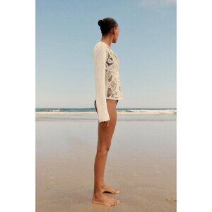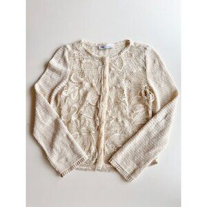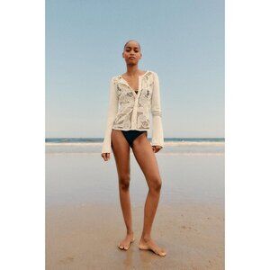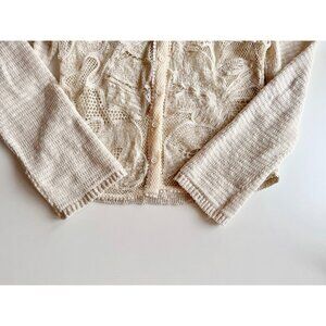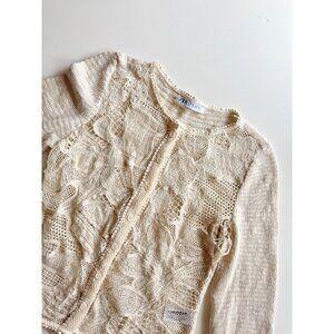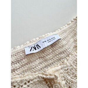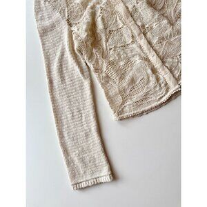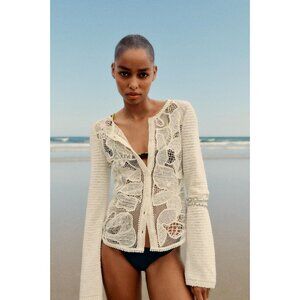 ZARA Ecru Ivory Contrast Cotton Blend Lace Knit Cardigan Sweater, Size XL
