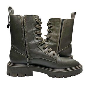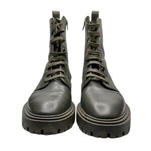 ZARA FAUX LEATHER LACE-UP FLAT ANKLE COMBAT BOOTS IN MUTED OLIVE GREEN - 39 (9)