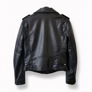 ZARA Faux Leather Biker Jacket Womens (M) Black Moto Style NWOT