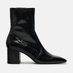 ZARA Faux Patent Black Ankle Block Heels Boots