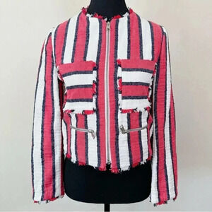 ZARA Frayed Striped Full Zip Jacket