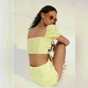 ZARA GINGHAM LIME GREEN CROP TOP size S