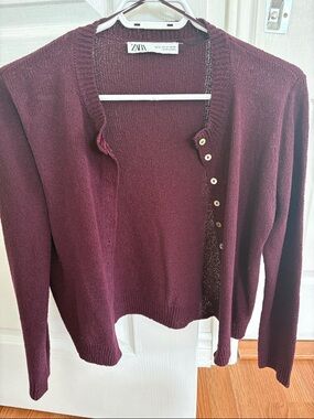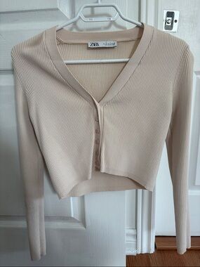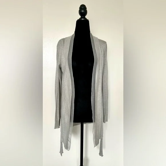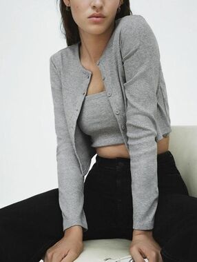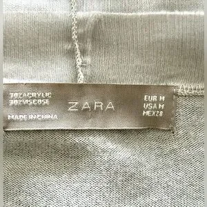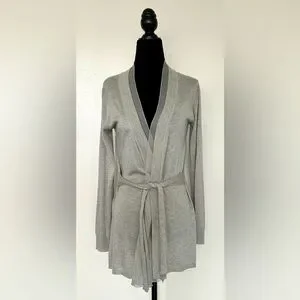 ZARA Grey Greige Cardigan with Silky Trim - M