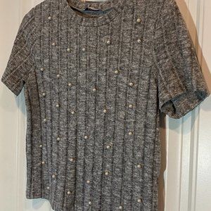 ZARA Grey Velvet Pearl Embellished Cropped Sweater