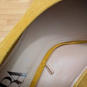 Yellow Zara Heels. Suede. Shiny detail on the heel. New! Never worn. Comfortable. Heel height: 4 inch (10 cm)