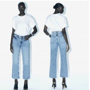 ZARA High Rise Straight Leg Z1975 Button Fly Jeans 6164 057 Mid Blue Size 8
